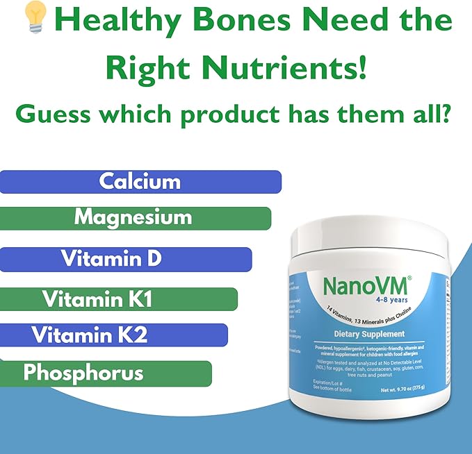 - Allergen-Free Daily Vitamins - NanoVM is a safe dietary supplement for children with food allergies and unique dietary requirements. Our kids multivitamin has no detectable limit for eggs, dairy, fish, crustaceans, soy, corn, tree nuts, and peanuts, so your child can enjoy it without the fuss.