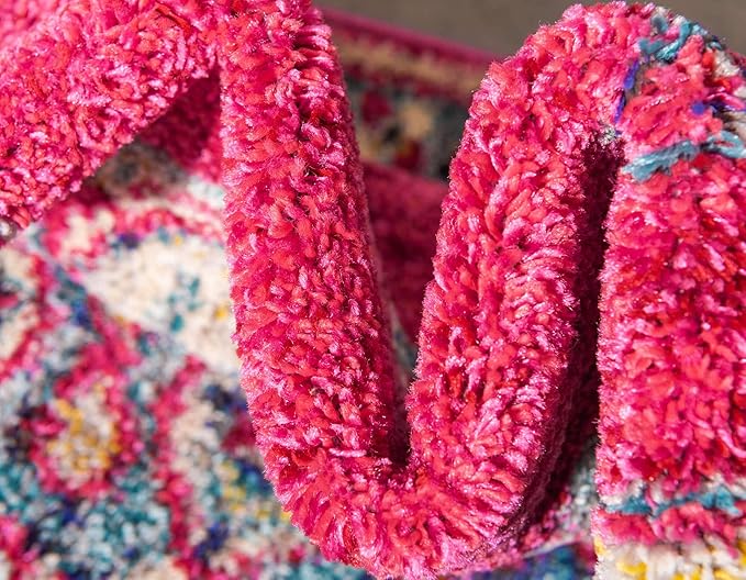 - Size in FT: 2' 7 x 10' 0 - Size in CM: 80 x 305 - Pile Height & Thickness: 1/2" - Colors: Fuchsia, Beige, Gold, Navy Blue, Light Blue, Red