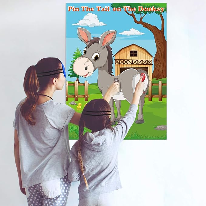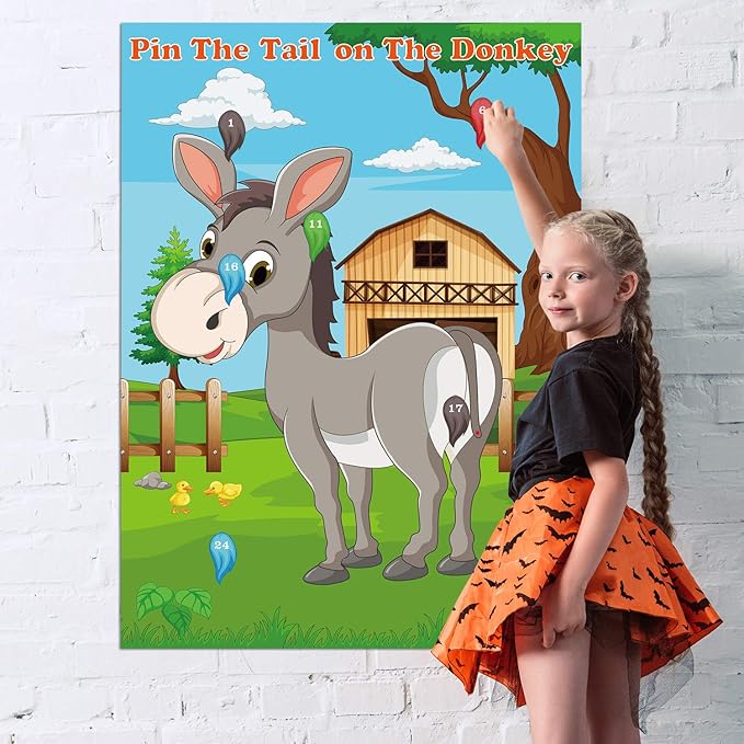- Pin the tail on the Donkey party game set, a good choice to kids party, kid games, carnival circus party, classroom party, birthday party, add more fun to your friends, kids and families