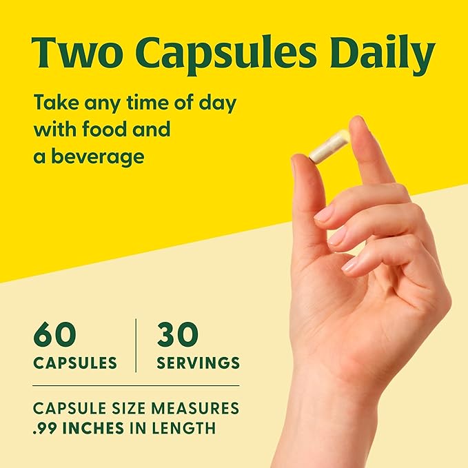 - Take Any Time Of Day: Take 2 capsules any time of day with food and a beverage; Suitable for vegetarian diets