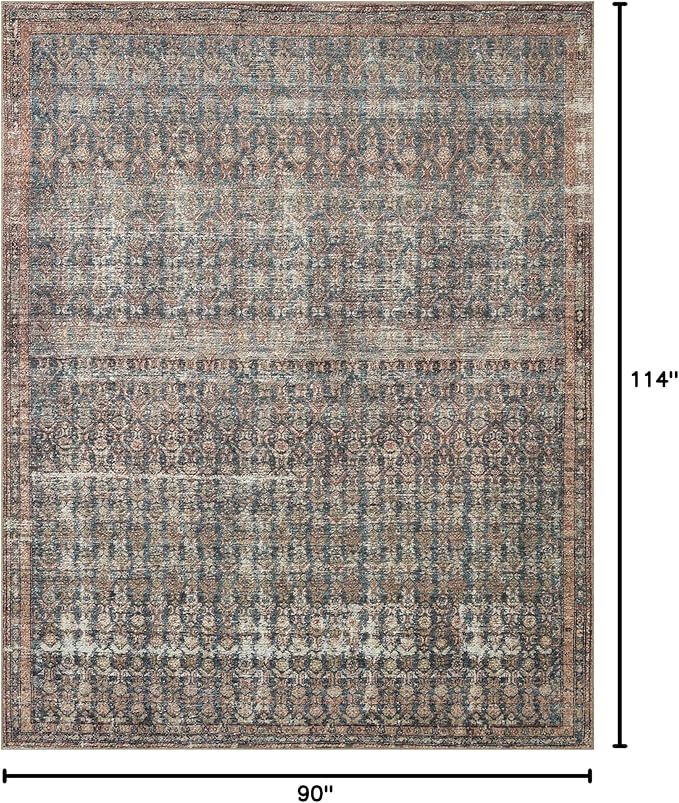 Loloi Amber Lewis Billie Collection, Ocean & Brick 7'-6" x 9'-6" Area Rug – Antique & Distressed Accent Rugs for Living Room, Bedroom, Entryway & Hallway, No Shed High Traffic Area Home Decor Rug
