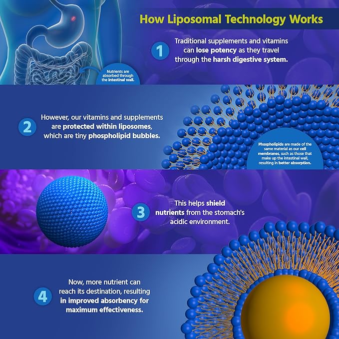 - MAXIMUM ABSORPTION LIPOSOMAL TECHNOLOGY: Unlike traditional pills and capsules, where the active ingredients get destroyed by acids in the digestive tract, Core Med Science uses Liposomal Technology to protect nutrients with a liposomal “bubble” to safely deliver nutrients into the bloodstream for optimal absorption. Provides up to 80% more absorption and is also gentler on your stomach.