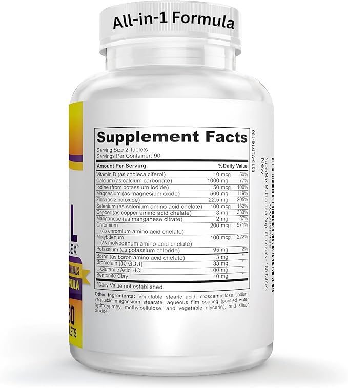 - PROFESSIONALLY FORMULATED WITH: Vitamin D, Calcium, Iodine, Magnesium, Zinc, Selenium, Copper, Manganese, Chromium, Molybdenum, Potassium, Boron, Bromelain, L-Glutamic Acid HCl, and Bentonite Clay (known for containing most trace minerals) | All-in-1 Multi Minerals Supplement for Men & Women