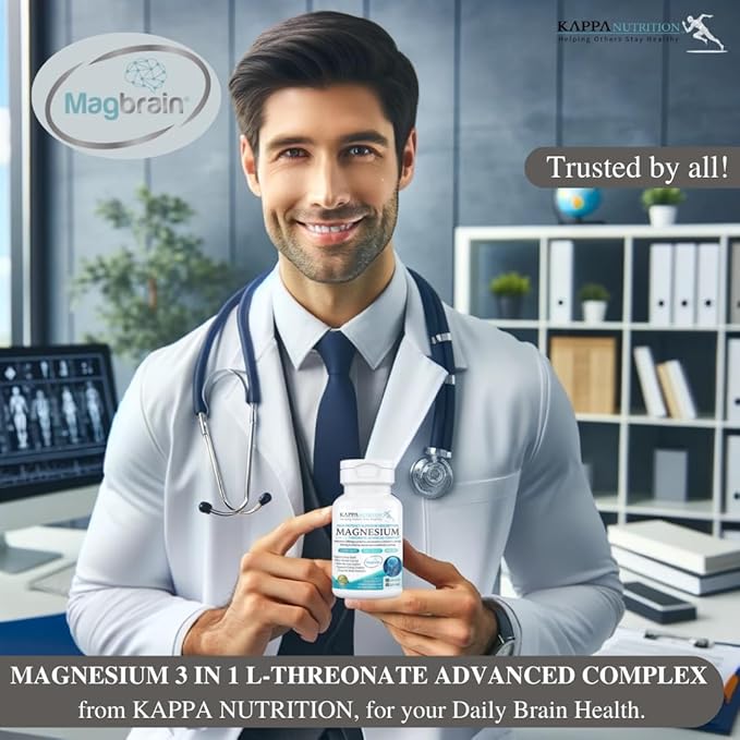 Kappa Nutrition Magbrain™ Magnesium L-Threonate Plant-Based, 420mg Elemental Magnesium (3 Capsules) from 2,253mg, 90 Vegan Capsules, Brain, Sleep & Muscle Support.