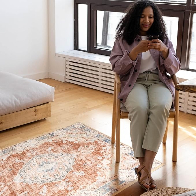 - TIMELESS DESIGNS:Floral Rug 3'x5' non slip contains elements of Vintage,Faded,Moroccan, Traditional,Modern, Classic, Shabby Retro Chic and more;Orange rug fits most interior designs and make the room more designed.