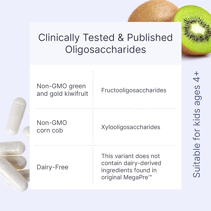 - Dairy-Free Version - This dairy-free MegaPre option is the same Precision Prebiotic supplement you know and love. These prebiotics for women, men and kids ages 3 and up can help reinforce the benefits of MegaSporeBiotic.