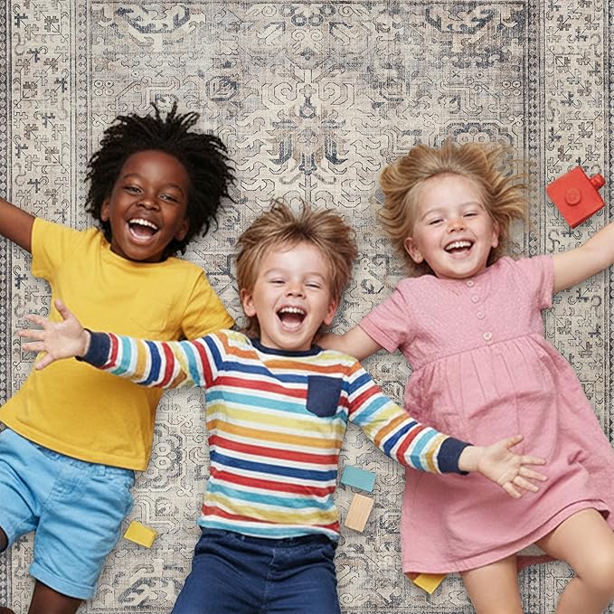 ReaLife Rugs Machine Washable Area Rug - Living Room Bedroom Bathroom Kitchen Entryway Office - Padded Low Pile Stain Resistant Premium - Boho Farmhouse Vintage - Paz - Beige Gray Ivory 2'6" x 6'