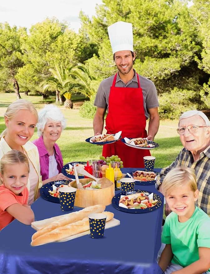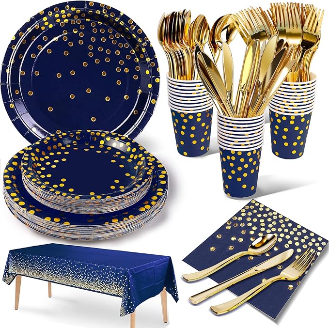 141 Pieces Navy Blue Gold Party Supplies, Disposable Party Decorations Sets Include Paper Plates Napkins Cups, Plastic Forks Knives Spoons, for Baby Shower Birthday Wedding -20 Guests