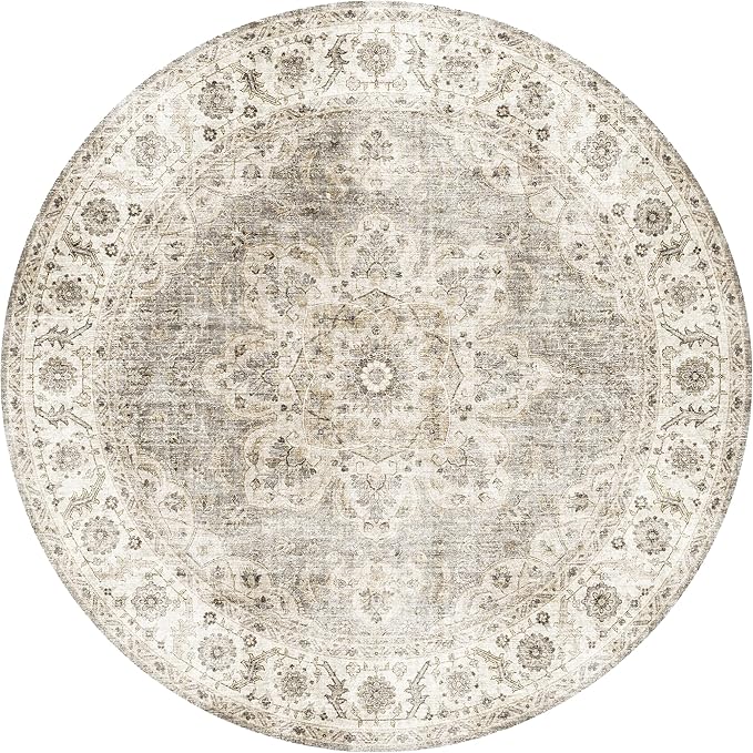 ReaLife Rugs Machine Washable Area Rug - Living Room Bedroom Bathroom Kitchen Entryway Office - Padded Low Pile Stain Resistant Premium - Boho Farmhouse Vintage - Joy - Beige Ivory 6' Round