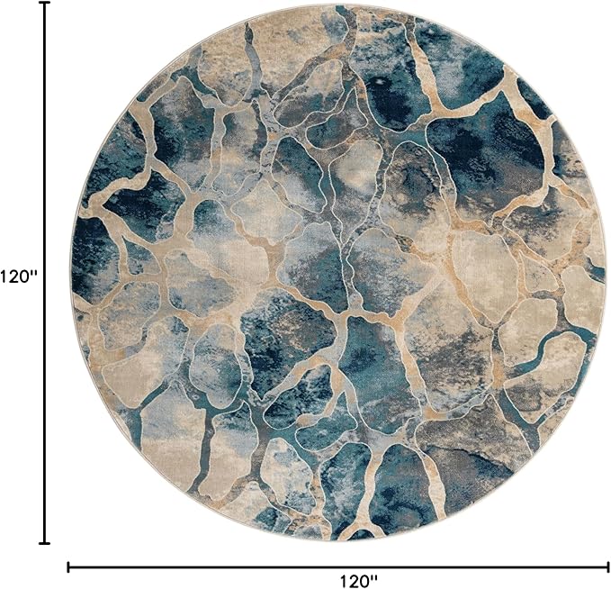 Unique Loom Mystic Collection Area Rug - Fitz Roy (10' Round, Navy Blue/Beige)