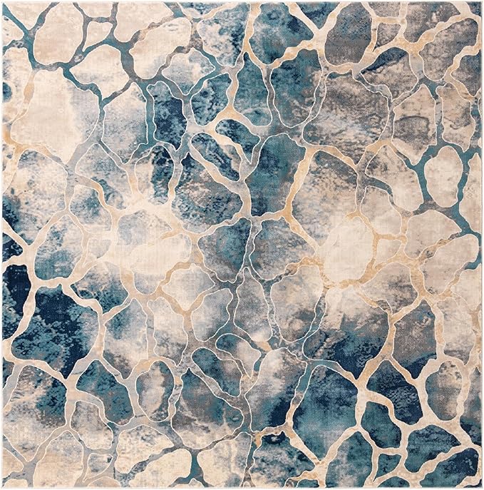 Unique Loom Mystic Collection Area Rug - Fitz Roy (10' Square, Navy Blue/Beige)