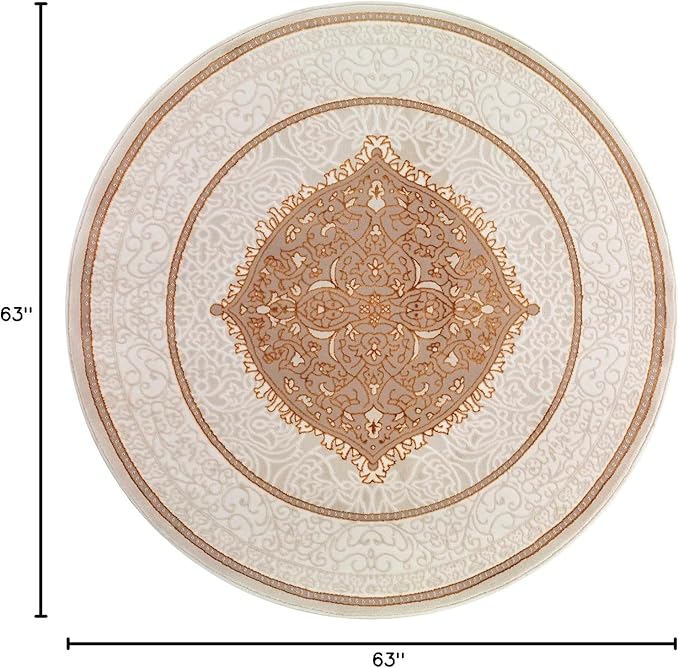 Antep Rugs Babil Gold 5x5 Oriental Bordered High Low Textured Traditional Indoor Area Rug, Beige Gold, 5'3" Round