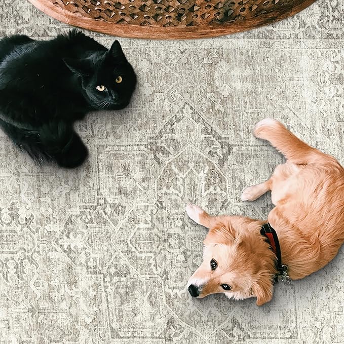 ReaLife Rugs Machine Washable Area Rug Runner - Living Room Bedroom Bathroom Kitchen Entryway Office - Padded Low Pile Stain Resistant Premium - Boho Farmhouse Vintage - Lyle - Beige Ivory 2'6" x 10'