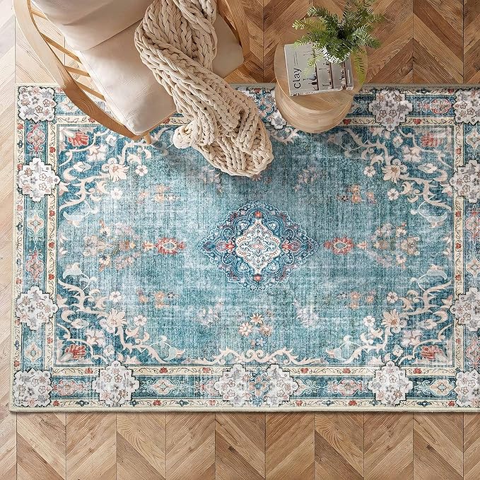 - TIMELESS DESIGNS:Floral Rug 3'x5' non slip contains elements of Vintage,Faded,Moroccan, Traditional,Modern, Classic, Shabby Retro Chic and more;Teal rug fits most interior designs and make the room more designed.