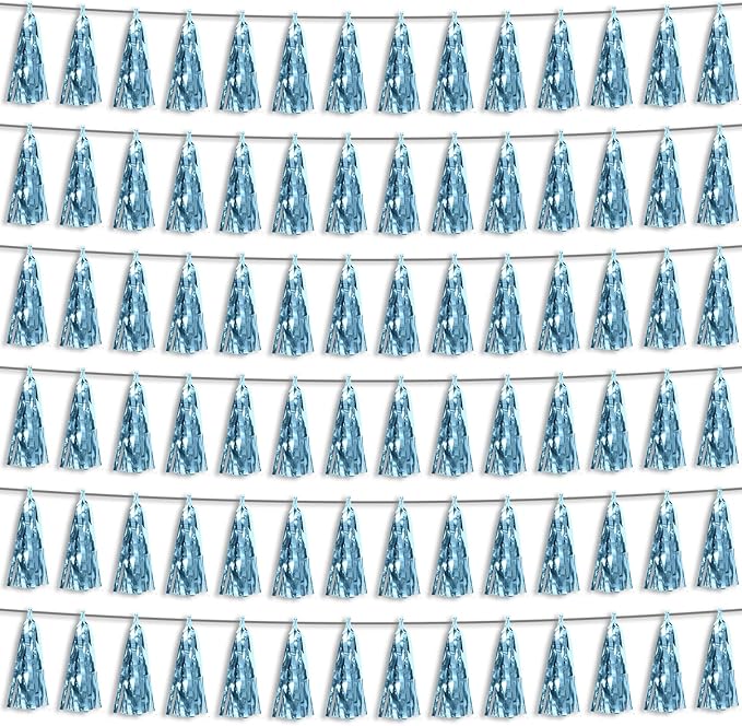- 【Perfect Party Decoration】The light blue tinsel garlands are designed in a metallic Fringe, bright, and beautiful, at the same time, they shine in the sun, and these gorgeous tassel garlands create a wonderful backdrop or centerpiece for your party space. and bring you, your family, and your friend's good Visual effects. your party many emotional and touching moments where a lot of pictures will be taken and everybody will have a wonderful time together.