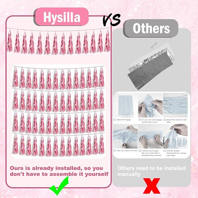 - 【Perfect Party Decoration】The light pink tinsel garlands are designed in a metallic Fringe, bright, and beautiful, at the same time, they shine in the sun, and these gorgeous tassel garlands create a wonderful backdrop or centerpiece for your party space. and bring you, your family, and your friend's good Visual effects. your party many emotional and touching moments where a lot of pictures will be taken and everybody will have a wonderful time together.