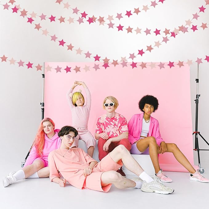 - PACKAGE CONTAINS: This set has four hot-pink red rose-gold paper star garlands, the length of each strand is 4.7 meters/11.5 feet, the total length is 18.8 meters/62 feet.