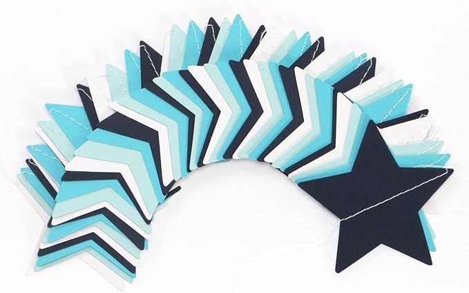 - PACKAGE CONTAINS: This set has four light-royal navy-blue white paper star garlands, the length of each strand is 4.7 meters/11.5 feet, the total length is 18.8 meters/62 feet.