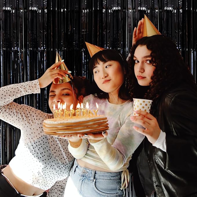 Black Party Streamers Foil Fringe Backdrop Curtains Tinsel Streamers Birthday Party Decorations Fringe Backdrop for Birthday Party Graduation Bridal Shower