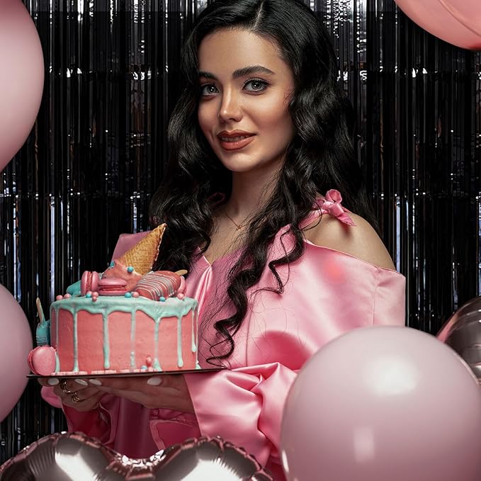 - Birthday Curtain Backdrop:10Pack,Available in pink, white, black and rainbow colors,each curtains size is 3.28 ft x 6.56 ft, enough length foil fringe backdrops are perfect for the door, wall and table,feel free to cut to any length you want.