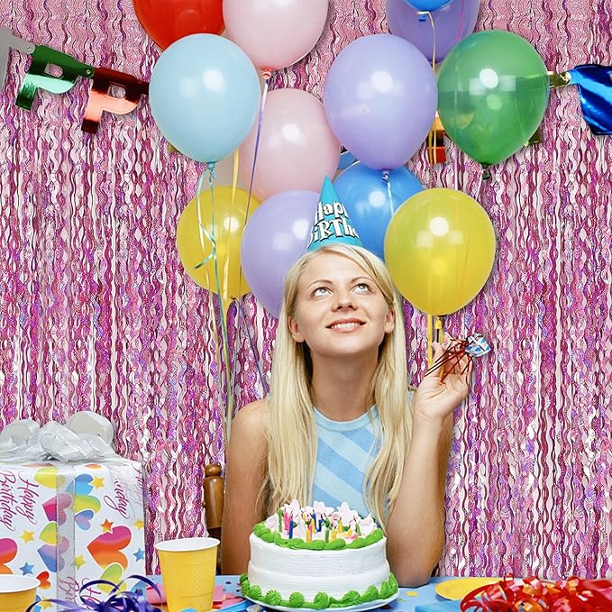 Pink Streamers Fringe Backdrop Tinsel Foil Fringe Curtains Wavy Backdrop for Parties Sparkle Metallic Wavy Foil Fringe Backdrop Curtain Photo Booth Props for Birthday Wedding