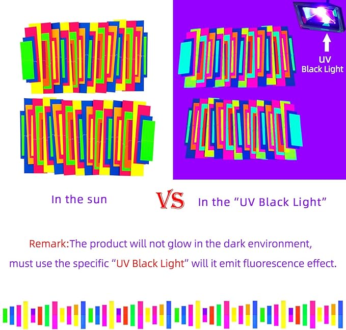 - 【All OCCASIONS】Our luminous glow party supplies perfect for blacklight dark glow party decorations,they look bright in the sun, but they will glow in the black light,birthday party,anniversary,festival celebrations, black light party, baby showers,graduation, school activities.which is very suitable for your neon theme or luminous birthday party.