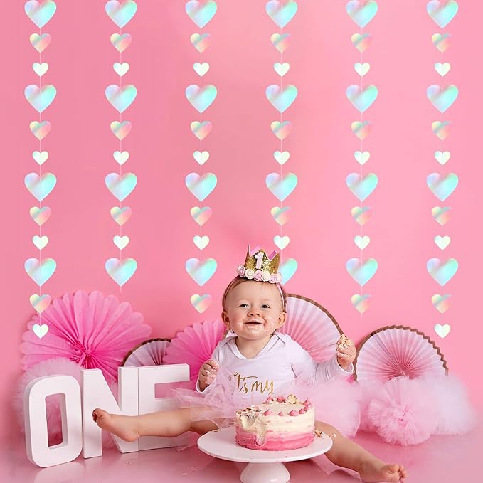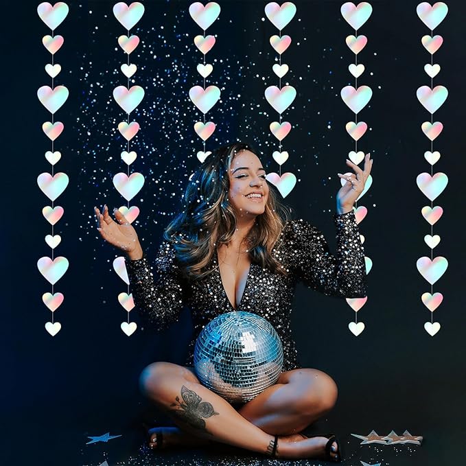 - PACKAGE CONTAINS: This set has 4 iridescent disco-holographic 2IN&2.7IN&4IN paper heart garlands,the length of each strand is 2 meters/6.56 feet, the total length is 12 meters/39.37 feet.