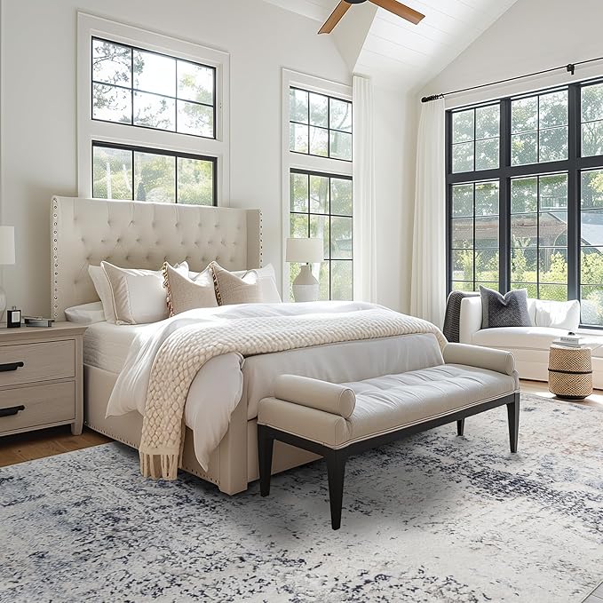 Area Rug 9×12, Large Vintage Boho Rug,Ultra-Soft Low Pile, Washable, Non Slip,Stain Resistant, Printed Carpet for Living Room Bedrooms Playroom Office Kitchen, Blue/Abstract