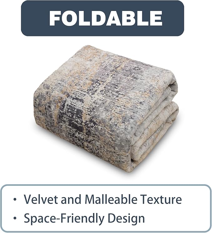 Area Rug 9×12, Large Vintage Boho Rug,Ultra-Soft Low Pile, Washable, Non Slip,Stain Resistant, Printed Carpet for Living Room Bedrooms Playroom Office Kitchen, Gold/Grey