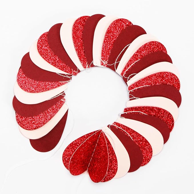 - 【Material】The heart is 2 dayers paper, please open them so they can have the 3D effect. The material is eco-friendly pink burgundy red paper.You can cut to any length you want if you need shorter length.The hearts are cut very neatly.