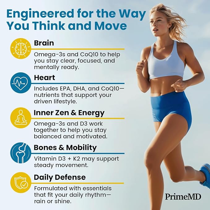 - Move Without Limits: Triglyceride Omega 3 fish oil and Vitamin D3 & K2 work in harmony in our mini fish oil softgels to ensure efficient calcium absorption and utilization—for mobility that matches your lifestyle.