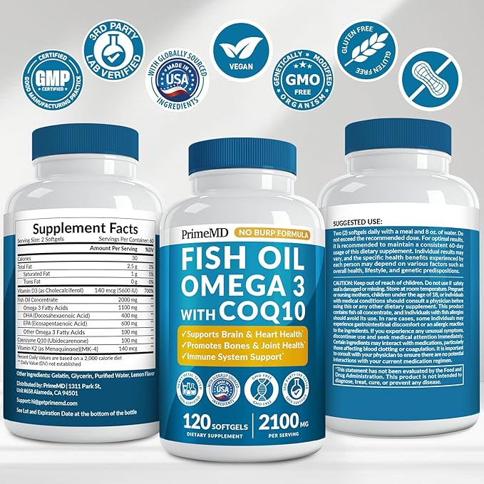 - Our Omega-3 Fish Oil blend is for those dedicated to elevating their health. It's rich in EPA and DHA, with the added benefits of CoQ10, and Vitamin D3 K2. It’s an all-in-one fish oil omega 3 supplements for comprehensive well-being.