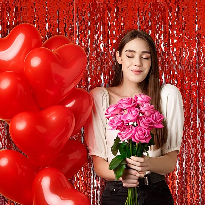 - Valentines Day Backdrop:5 Pack, each curtains size is 3.28 ft x 6.56 ft, enough length foil fringe backdrops are perfect for the door, wall and table,feel free to cut to any length you want.