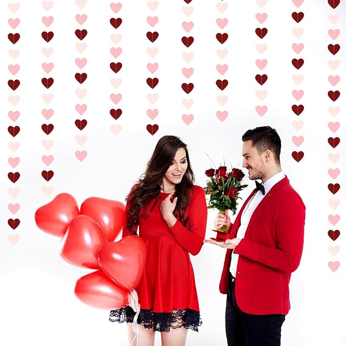 - PACKAGE CONTAINS: This set has 4 glitter pink burgundy red paper heart garland,the length of each strand is 4.7 meters/11.5 feet, the total length is 18.8 meters/62 feet.The hearts are 2IN.