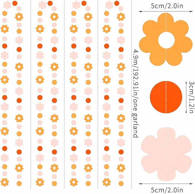 - 【Package Contains】4 sets of the party banner garland,each is 16 feet/ 4.9 meters long, total length is 64 feet/ 19.4 meters.Every Banner has 30pcs dots and 15pcs flower,the size is 1.18” and 1.97”.