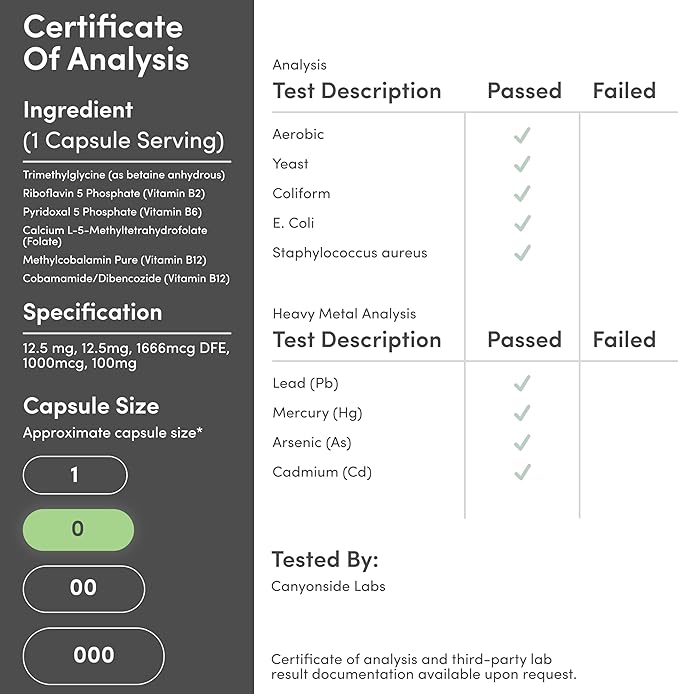 - SIX TOTAL METHYLATED VITAMINS: Contains trimethylglycine and calcium L-5-methyltetrahydrofolate (MTHFR multivitamin) to help support healthy folic acid levels and control homocysteine levels in the body. It is important to use methylated folic acid since standard folic acid is inert in the body and cannot be processed further by many people