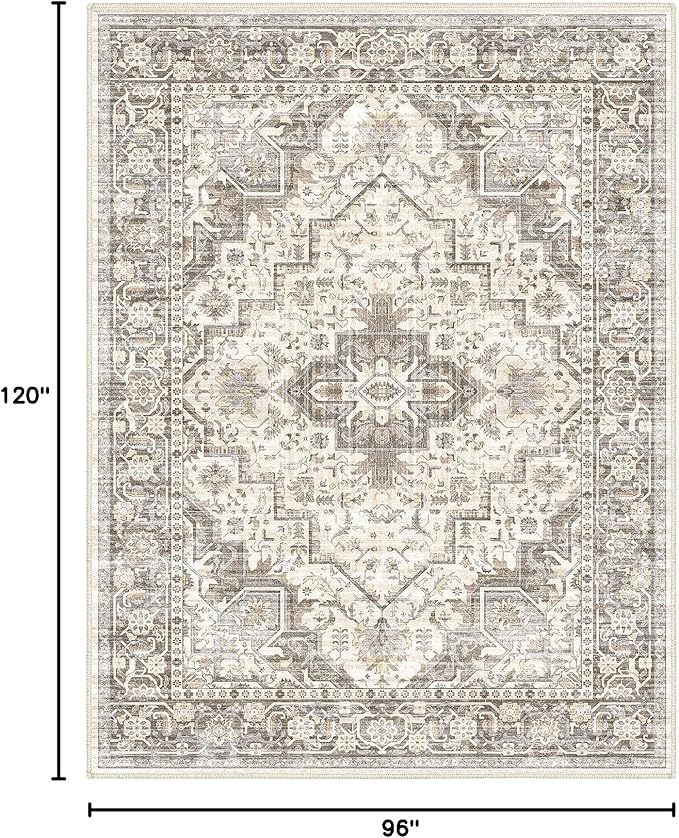 Washable Vintage Area Rug 8x10,Printed Vintage Home Decor, Floor Decoration Carpet Mat,Thin Rug for Living Room, Distressed Oriental Reto Indoor Floor Carpet Rug (Brown Beige 8x10)