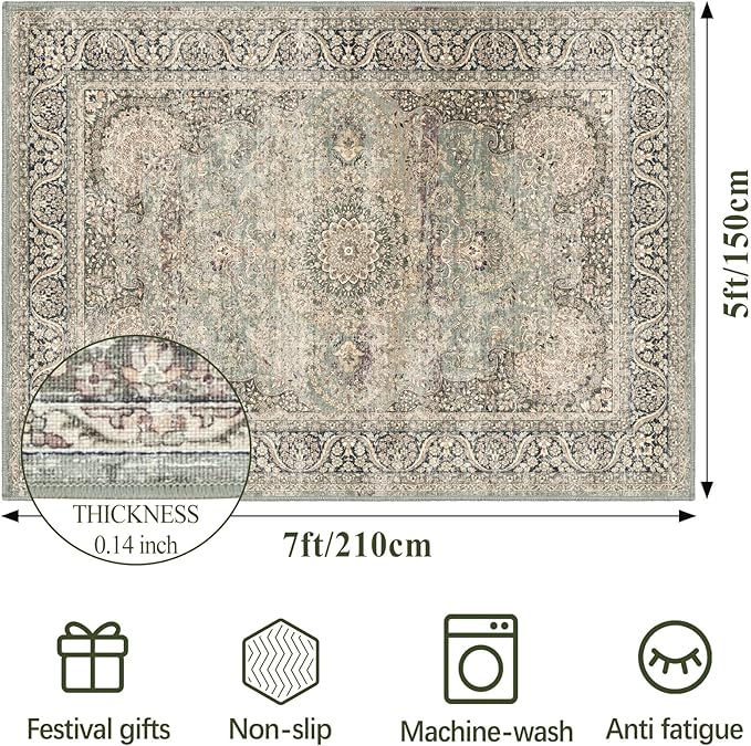 - 【APPLICABLE SCENARIO】Classic color matching, washable rug 5x7 suitable for various indoor decorations, living rooms, bedrooms, offices, or any space that needs to add charm. As a home decoration rug, it brings surprises to family and friends