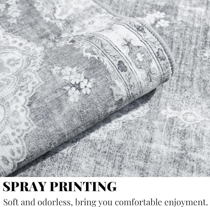 MUJOO Hallway Runner Rug 2'x8' Grey,Long Boho Rug Runners Washable Non Slip Carpet for Entryway Kitchen Bathroom Bedside,Vintage Bohemian Distressed Farmhouse Non Slip Carpet,Floral