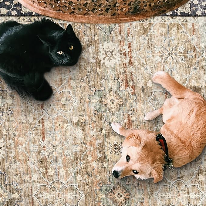 ReaLife Rugs Machine Washable Area Rug - Living Room Bedroom Bathroom Kitchen Entryway Office - Padded Crease Free Stain Resistant Premium - Boho Farmhouse Vintage- BEV- Beige Tan Brown - 2'x 3'
