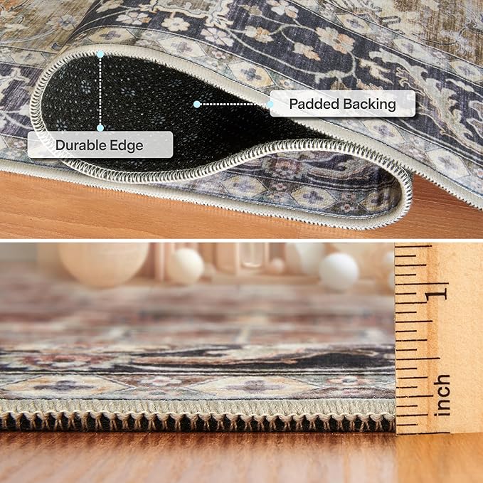 - PADDED BACKING Thin padded backing features a slight non-slip grip texture, though a non-slip rug pad may be desired for a better hold. For rugs 4' x 6' and smaller, wash in a front-load residential size machine. For rugs 5' x 7' and larger, wash in an oversized/laundromat front-load machine. Actual colors and size may vary from the image(s) shown due to manufacturing limitations.