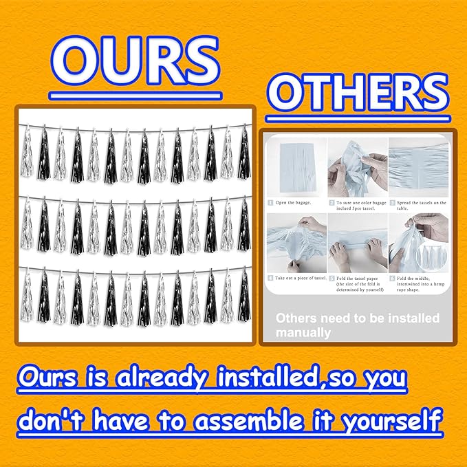 - 【Reusable Material】: high-quality metallic foil tassel garlands, with the virtue of nice craftsmanship and lightweight, they are reusable and safe, and not easy to fade; They come with white ribbon for hanging, and garland tassels hang perpendicular to the string, and are adjustable to provide you with the option of spreading the tassels out or piecing them closer together.