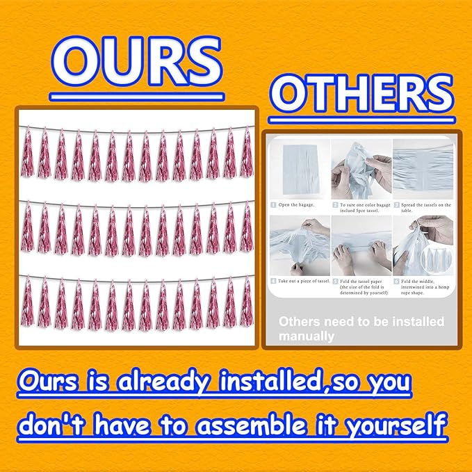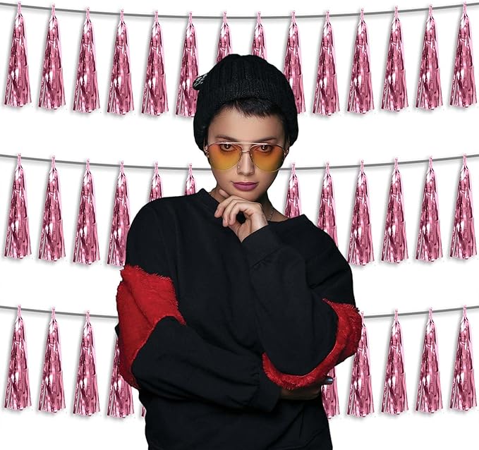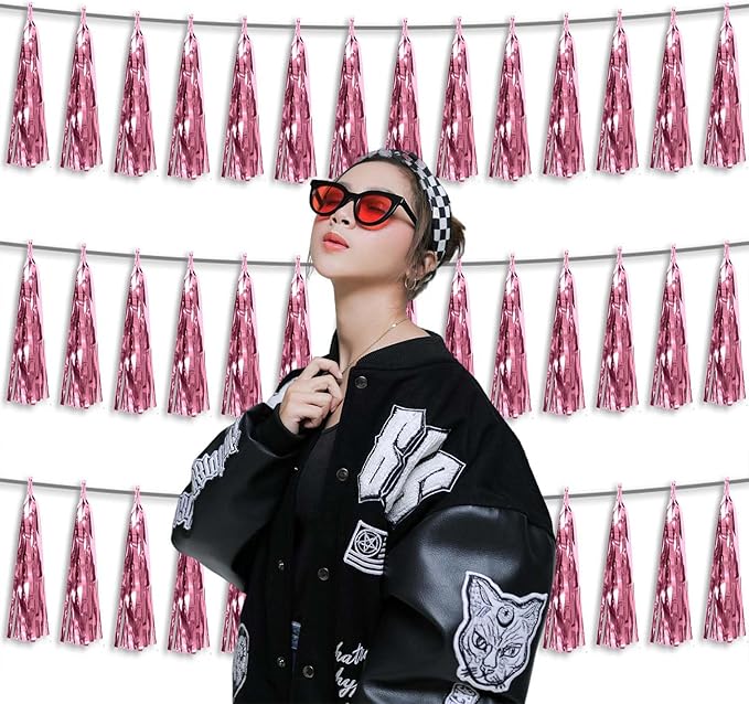 - 【Package Includes】The total length of the pink birthday tassels banner is 30 feet, divided into 3 strips, each 10 feet long. Each banner contains 15 tassels, and each tassel measures 14 inches, for birthday decorations many occasions uitable for Patriotic display, Homecoming Float, Christmas Float, ecorative metal trailers, graduation floats etc