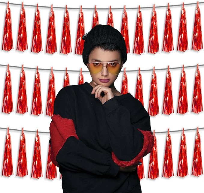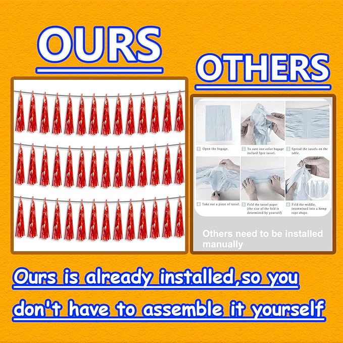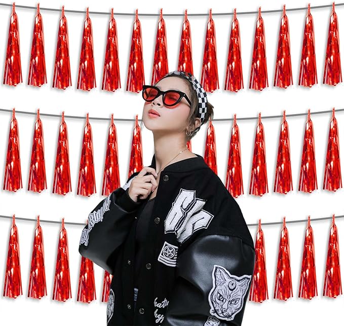 - 【Package Includes】The total length of the red birthday tassels banner is 30 feet, divided into 3 strips, each 10 feet long. Each banner contains 15 tassels, and each tassel measures 14 inches, for birthday decorations many occasions uitable for Patriotic display, Homecoming Float, Christmas Float, ecorative metal trailers, graduation floats etc