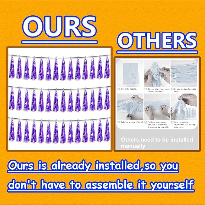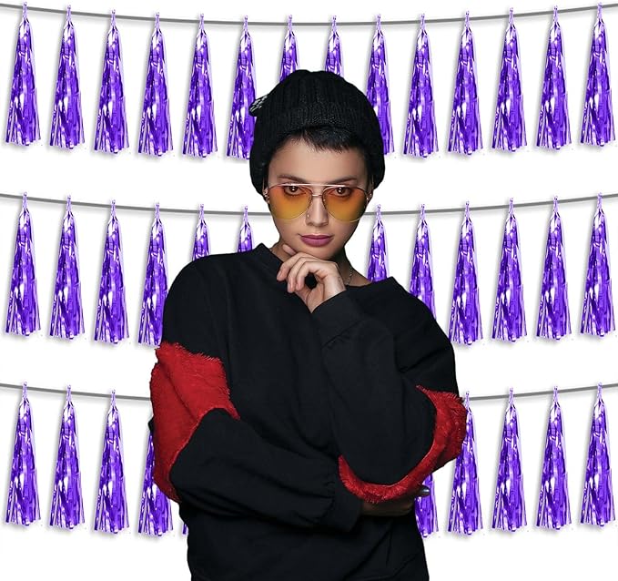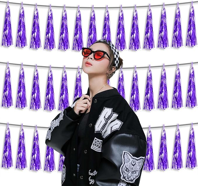 - 【Package Includes】The total length of the purple birthday tassels banner is 30 feet, divided into 3 strips, each 10 feet long. Each banner contains 15 tassels, and each tassel measures 14 inches, for birthday decorations many occasions uitable for Patriotic display, Homecoming Float, Christmas Float, ecorative metal trailers, graduation floats etc