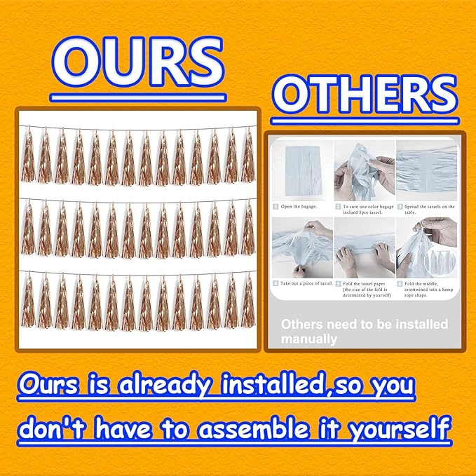 - 【Package Includes】The total length of the champagne gold birthday tassels banner is 30 feet, divided into 3 strips, each 10 feet long. Each banner contains 15 tassels, and each tassel measures 14 inches, for birthday decorations many occasions uitable for Patriotic display, Homecoming Float, Christmas Float, ecorative metal trailers, graduation floats etc