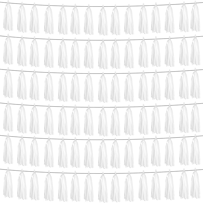 6P White Foil Fringe Metallic Tassel Streamers Banner Tassel Garland for Parade Floats, Graduation, Wedding, Birthday, Graduation, Christmas, Bridal/Baby Shower Party Decorations