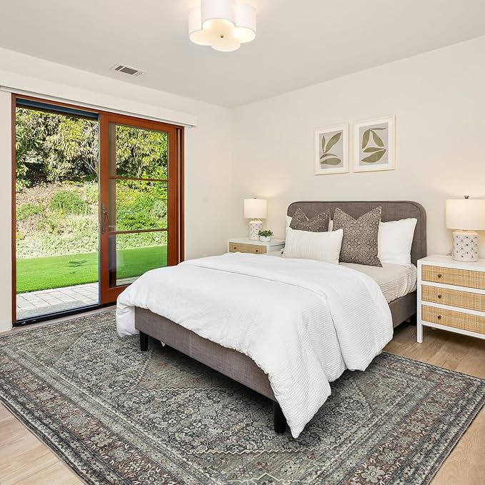 Area Rug 8×10, Large Vintage Boho Rug,Ultra-Soft Low Pile, Washable, Non Slip,Stain Resistant, Printed Carpet for Living Room Bedrooms Playroom Office Kitchen, Rust/Green