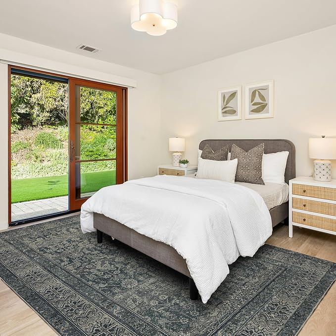 Area Rug 8×10, Large Vintage Boho Rug,Ultra-Soft Low Pile, Washable, Non Slip,Stain Resistant, Printed Carpet for Living Room Bedrooms Playroom Office Kitchen, Moss/Green