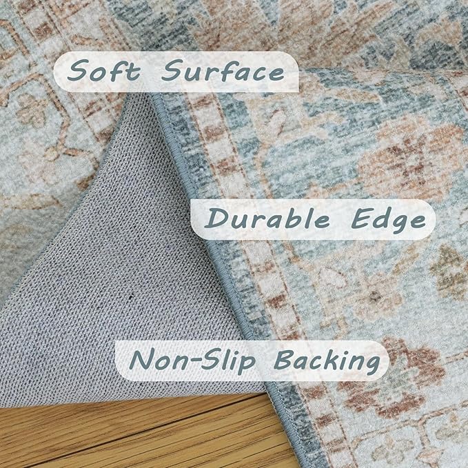 8x10 Vintage Living Room Area Rug - Large Soft Washable Indoor Floor Oriental Farmhouse Rugs for Bedroom, Home Office House Decor, Ocean Terracotta